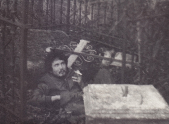 Помню, ходили втроем на этюды на Введенское кладбище. Рисовать рядом с Мишей не получалось, мы просто стояли и смотрели, как на кривом куске картона появляется скрупулезный эшеровский чертеж гробницы, потом экспрессивно ложатся краски. Кладбище — другой мир в центре Москвы. Миша в белой рубашке с этюдником, отрешенный от всего происходящего, прищуренный взгляд… Как-то надолго запомнилось.